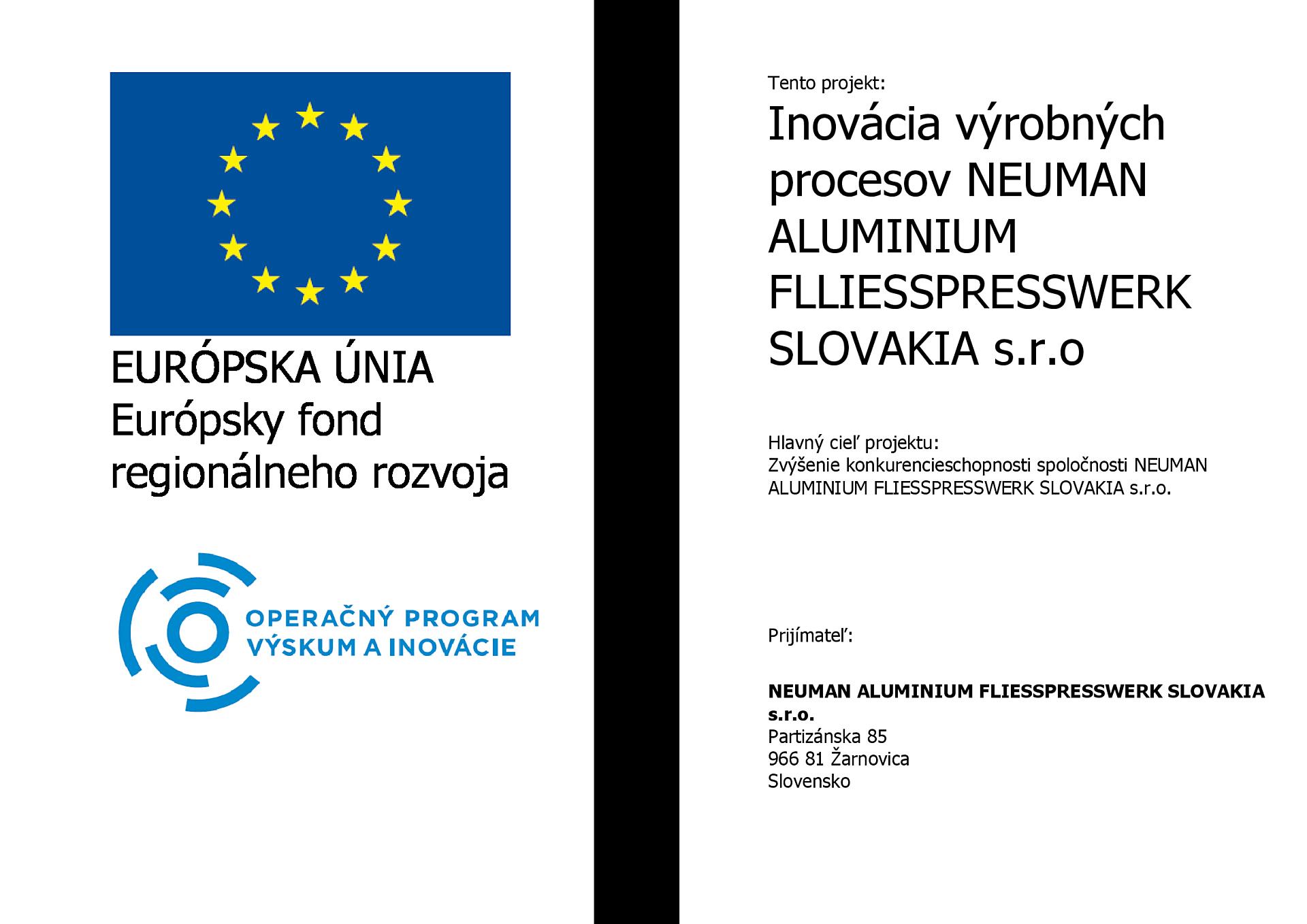 Výzva na predkladanie ponúk na zákazku “ Obstarávanie inovatívnej technológie“ spoločnosti Neuman Aluminium Fließpresswerk Slovakia s.r.o
